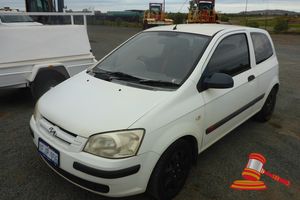 6/2003 HYUNDAI GETZ GL 3 DOOR HATCH WHITE, 4X2, MANUAL, P/S, A/C, PETROL, REG NO - 1EJP956 (LIC 20/8/2021) (**NEVDIS WRITTEN-OFF VEHICLE NOTIFICATION: REFER TO JURISDICTION, WA, 22/11/2013, INSPECTED WA, 21 NOV 2013, REPAIRABLE WRITE-OFF, WA, 17/9/2013, REPAIRABLE WRITE-OFF**) ODO - 213,175KMS SHOWING, ENGINE - G4EC3576378, VIN - KMHBT31AR3U040064 (KS#3624) (**CONDITION REPORT - SCRAPE MARKS & STONE CHIPS ON FRONT BUMPER, SMALL STONE CHIPS IN ROOF PANEL, REAR BUMPER DAMAGE, PANEL, UPHOLSTERY, FLOOR, DASH & TYRES - FAIR, PAINT - POOR/ FAIR, GLASS - FAIR/GOOD**)
