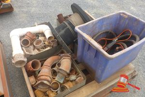 VARIOUS ITEMS INCLUDING GATE VALVES, TRAILER PINS, FRICTION DISCS, PRESSURE CLEANER PARTS, LIFTING SHACKLES AND HOOKS