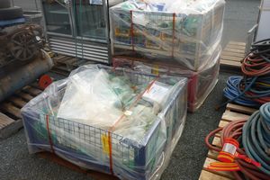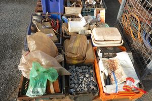 QUANTITY OF VARIOUS MECHANICAL SPARES (1 X CAGE) INCLUDING 12V LEAD ACID BATTERIES, COOLING ELEMENT, BALL VALVES, SWITCHES, FILTERS & RADIATOR HOSE (DR#612282)(3022DISPFIN032021) (DR#612286)