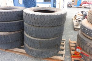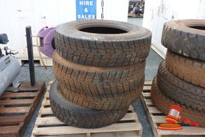 4 X 11R22.5 USED TYRES AND 8 X STUD RIMS