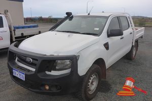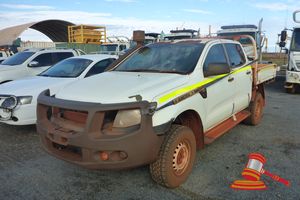 7/2014 FORD RANGER 2 DUAL CAB TRAY BACK, WHITE, 4X4, AUTO, P/S, A/C, 3.2LTR TURBO DIESEL, SMARTBAR, SNORKEL ALLOY SIDESTEPS, TOW ASSEMBLY, TRAY MOUNTED TOOLCHEST, (** NON RUNNER, BRAKE MASTER CYLINDER REMOVED, ENGINE BELTS REMOVED, TURBO & PNR INTAKE, PIPING REMOVED, DRIVERS WINDOW CONTROLS & ARM REST REMOVED, STEERING WHEEL CENTRE & ROOF CONSOLE DISMANTLED, DRIVERS SIDE DOOR WINDOW SEALS MISSING, BOTH FRONT & REAR PASSENGER DOORS WILL NOT CLOSE DENT IN REAR DRIVERS DOOR, KEYS JAMMED/STUCK IN IGNITION, PAINT PEELED OFF, ROOF PANEL , FRONT GRILL REMOVED, REG NO - (UNLIC) ODO - 215,992KMS SHOWING, ENGINE - SA2PEJ100250 VIN - AFAWMEF50EJ100250, (**CONDITION REPORT - PANEL - FAIR, PAINT - POOR, GLASS & UPHOLSTERY - FAIR/GOOD, FLOOR - FAIR, DASH - POOR/FAIR, TYRES - FAIR**)