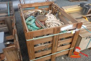 STEEL TUB CONTAINING USED VARIOUS SIZE SOFT SLINGS