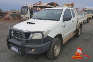 1/2014 TOYOTA HILUX SR 150SER XTRA CAB 5 SEAT TRAY BACK, WHITE, 4X4, MANUAL, P/S, A/C, 4 CYLINDER TURBO DIESEL 3.0LTR STEEL BULLBAR, ALLO Y SIDE STEPS, WORKLIGHTS, STEEL TRAY WITH DROP DOWN SIDES, TOW ASSEMBLY, 2 WAY RADIO, REG NO - R11483 (LIC 31/7/2021) ODO - 191,866KMS SHOWING, ENGINE - 1KDA405571, VIN - MR0HZ22G203517959 (KS#) (ASSET NO - P2041) (**CONDITION REPORT - PANEL - GOOD, PAINT - FAIR, GLASS - GOOD, UPHOLSTERY - FAIR, FLOOR, DASH & TYRES - FAIR/GOOD, OVERALL RATING - FAIR/GOOD**) EX CITY OF KARRATHA