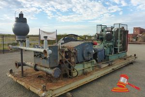 MUD PUMP-MOUNTED ON SKID, ODO - 735HRS INCLUDES PUMP - GARDNER DENVER TRIPLEX, MODEL-OPI 350D, SERIAL NO-594PN005 ENGINE - DETROIT DIESEL 12V71, TWIN SUPER CHARGED, SERIAL NO - K045, TRANSMISSION - ALLISON CLT5960 & CRATE OF SPARE PARTS/FILTERS (DN21-02)
