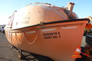 HARDING 58 PERSON LIFE BOAT/ SURVIVAL CRAFT, 8.61M (L) X 3.16M (W) X 3.3M (H), TYPE M.C.B. 28, BNO 130049#3, YOM 1991, VOLVO PENTA 3CYL DIESEL ENGINE, BATTERY IS FLAT UNABLE TO TURN OVER ENGINE OR READ HOUR METER , (DAF#18327)