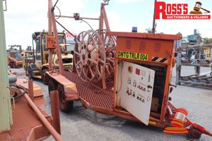2011 DEWATERING SUBMERIBLE PUMP CONTROL PLANT TRAILER, GREY/GREEN, DUAL AXLE, (REG# UNLIC) FLAT HOSE REEL, CONTROL PANEL (440W) (4622 HRS PUMP RUN TIME) VIN# NOT VISIBLE, STAINLESS STEEL PIPEWORK & VALVES, DEMAG ELECTRIC HOSE RE.REELER WITH REDUCTION GEARBOX, ALUMINIUM GRID MESH, STABILISER LEGS, SUPPORT FRAME, FL# DWTGTRLR009, MEP-20210826-609 (W