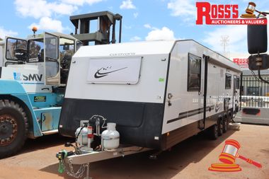 CONDITION: VIN PLATE REMOVED FROM CHASSIS, LHR STABILISER LEG SECURED BY RATCHET STRAP, EXTERNAL DOOR COMPARTMENT, BEEN TAPED, VARIOUS WALLS PAINT HAS COME AWAY. PANEL, PAINT, UPHOLSTERY, FLOOR: GOOD - TYRES: FAIR - OVERALL: GOOD, AXIS, BLUETOOTH CO PLAYER, 1 x WATER DISPENSER UNIT, CODED KEY LOCK BOX NEXT TO ENTRY DOOR - CODE AVAILABLE AT RECEPTION, KEY HOLE ENTRY TO MAIN DOOR WORN, LHR & RHR INDICATOR COVER SEALS LIFTING, 7 PIN RECTANGLE ADAPTOR FOUR PLUG