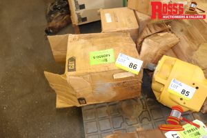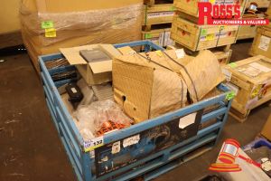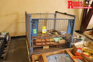 STEEL CAGE OF ASSORTED ITEMS INCLUDING - BOOM CRANE SLIDE PASTE 10KG, LED INDICATOR, 15 WATT POWER UNIT, 24v, 100w INVERTER, DC/AC, VALVE DIRECTIONAL CONTROL LEVER, DN450, NON RETURN VALVE, (B#2857955)