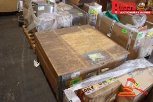 CRATE CONTAINING PLANETARY GEARS #141-4040100, CUMMINS HYDRAULIC PUMP #3048677RX, WILLEX CONTROL CABLE (DA#3602-7523)