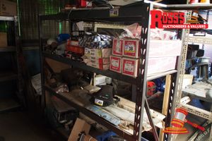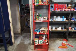 1 x SHELVING RACK, METAL, 5 TIER ADJUSTABLE, MDF BOARD INSERTS, APPROX DIMENSIONS: 1230mm W x 470mm D x 1830mm H; 1 x SHELVING RACK, METAL, 1 TIER ADJUSTABLE, MDF BOARD INSERT, APPROX DIMENSIONS: 1040mm W x 430mm D x 910mm H; WITH CONTENTS INCLUDING 4 x BOTTLES OF TRANSFER FLUID, QUANTITY OF SPRAY BOTTLES, ELECTRIC EXTENSION CORDS, LOADING STRAPS AND MISCELLANEOUS ITEMS