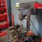 DRILL PRESS, MAKE/MODEL/DOM: UNKNOWN, ELECTRIC, 3 PHASE, PLUG MOUNTED TO METAL WORKBENCH, APPROX DIMENSIONS: 1090mm W x 885mm D x 630mm H; INCLUDES DAWN BENCH VICE, QUANTITY OF DRILL BITS, 4 x BEARING SEPARATORS AND OTHER MISCELLANEOUS ITEMS
