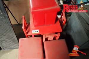1 x CHILDRENS PLAY TABLE WITH 3 x CHAIRS, 3 x OTTOMAN/STORAGE BOXES, WITH QUANTITY OF CHILDRENS TOYS