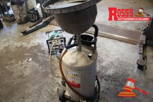 OIL DRAINAGE TANK, ON CASTORS AND OIL PUMP