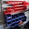 BUNDLE CONSISTING OF: CUSTOM STEP, METAL, APPROX 500mm W x 400mm D x 500mm H; AND WALL MOUNTED BRACKET WITH SMALL PLASTIC STORAGE TUBS CONTAINING A QUANTITY OF VARIOUS CAPS/PLUGS/WHEEL NUTS.