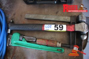 HANDTOOLS INCLUDING: 2 x BALL HAMMERS; 1 x HEAVY DUTY PIPE WRENCH, 14"; 1 x CLAMP