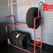 2 x TYRE TROLLEYS, METAL, 2 TIER, COLOUR: RED, ON CASTORS, APPROX DIMENSIONS: 1300mm W x 520mm D x 2100mm H; 1 x TRUCK TYRE SAFETY INFLATION CAGE, CUSTOM, METAL, APPROX DIMENSIONS: 1130mm W x 620mm D x 1420mm H **TYRES NOT INCLUDED
