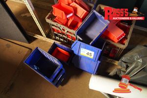 2 x CRATES CONTAINING QUANTITY OF HARD PLASTIC STACKABLE STORAGE TUBS