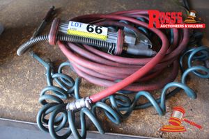 2 x AIR OPERATED IMPACT WRENCHES; 1 x AIR OPERATED GRINDER, WITH LENGTH OF AIR HOSE