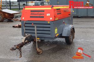 GREY/RED, SINGLE AXLE (REG# UNLIC) VIN# YA3-063617-130176441, ATLAS COPCO COMPRESSOR MOUNTED TRAILER, JOCKEY WHEEL (WP394)CONDITION: PARTS MISSING FROM ENGINE (UNKNOWN WORKING CONDITION)
