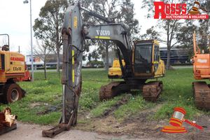 YELLOW/GREY, TRACKED, AUTO, DIESEL, 11,427 HOURS SHOWING, FL: AJ78, VIN# EC150LCC03163, KEY# 152, NO ATTACHMENTS, BUCKLED PANELS, OVER ENGINE COMPARTMENT, SIDE FIBREGLASS PANELS BROKEN