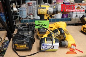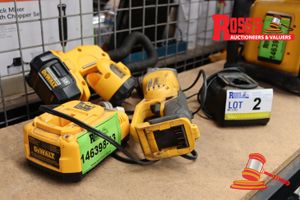 BUNDLE WITH ASSORTED DEWALT, DW919 RECHARGEABLE LIGHT WITH BATTERY, 2 x BATTERY CHARGING PACKS, GRINDER DCG412-XE CORDLESS CUT OFF TOOL (NO BATTERY)