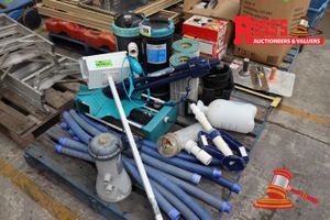 PALLET CONTAINING ASSORTED POOL AND SPA ITEMS EX, PIPES, CARTRIDGE FILTERS, POOL CLEANER ETC, LETTERBOX (1)
