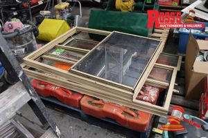 PALLET OF 3 X WINDOWS VARIOUS WIDTHS, 8 X FENCING FOOTER BLOCKS