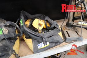 DEWALT BAG WITH1 X TORCH, 2 X HAND DRILLS, 2 X ELECTRICAL SAW,1 X SMALL ROTARY SAW, CHARGER (NO BATTERY)