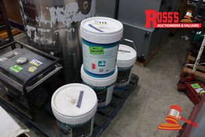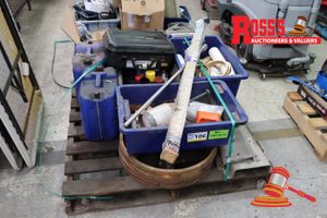 PALLET CONTAINING x 1 SPARE SHAFT, TUB OF ASSORTED SPRAY CANS, CAMERA GUARD CASE, 2 x 20L ANTICORIT VCI, VNI, 040, STEEL BRACKETS, MOUNTING BRACKET