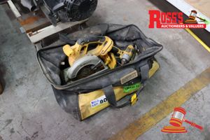 DEWALT BAG WITH 1 X TORCH,2 X HAND DRILLS, 2 X ROTARY SAWS, 1 X HAND SAW, CHARGER (NO BATTERY)
