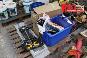 PALLET CONTAINING ASSORTED SUNDRIES/ INCLUDING FOLDING TROLLEY, WIRES, CAR PARTS ETC