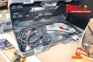 BUNDLE INCLUDING BURGESS POWERLINE ELECTRONIC ENGRAVER WITH CASE, STORAGE SEAT, EMPTY TOOL KIT AND 1 x SHOPTOOL DIE GRINDER WITH DIES