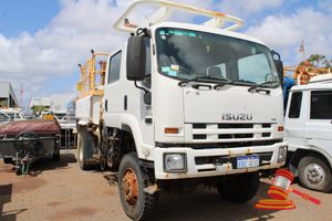 WHITE, 4X4, MANUAL, P/S, A/C, DIESEL, REG# KBC421C LIC: 31.1.23, ODO# 51,654 KMS SHOWING ON CLOCK, VIN# JALFTS34LB7000046, ENG# 6HK1604707, SEATS 7, GVM: 13,900 KG, DIESEL TANK ON TRAY, WATER NON POTABLE, HIAB 022 T-3, ROOF SAFETY UNIT SYSTEM, SIDE STEP UP FACILITY, PRESSURE WASHER, TOWBALL, FL#ST068, KEY# 96 (WP301)CONDITION: RUST/SURFACE RUST EVIDENCE TO CHASSIS