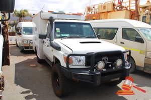 WHITE, 4X4, MANUAL, P/S, A/C, DIESEL (REG# UNLIC) ODO# 54,480 KMS SHOWING ON CLOCK, VIN# JTELC71JX00013001, ENG# 1HD0297607, SIDE STEPS, 2 X RH TALL STORAGE COMPARTMENTS, REAR DOOR ACCESS, SIDE DOOR ACCESS, 2 X MEDICAL GURNEY STRETCHERS, TROLLEYS, INTERNAL MOUNTED SEAT IN MODULE, NUMEROUS STORAGE BAYS IN MODULE, CODAN COMMUNICATION HAND PIECE, FL#03H1768, S44#RITM6565768, DR#65613, KEY# 173 (WP593)CONDITION: PASSENGER DOOR - WINDOW WINDER NOT ATTACHED, KNOCKING NOISE TO MOTOR ONCE STARTED, STOPS/STARTS AFTER STARTUP