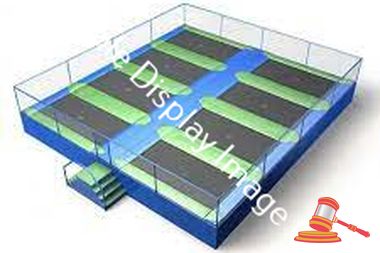 Multifield Commercial Trampoline Playgound (Disassembled), Made in China, comprising: Heavy Duty Galvanised components including; 3-Way and 4-Way Feet/Upright Support Bars, approx. 80mm x 75mm x 1000mm, Cross Rails/Braces, approx. 80mm x 40mm x 1330mm and 40mm x 40mm x 1780mm, Spring Frames, approx. 80mm x 50mm x 2300mm, with a Large quantity of Heavy Duty Commercial Grade Springs, 13 x Trampoline Mats, approx. 1800mm x 1800mm, 2 x Trampoline Mats, approx 2860mm x 1800mm and 1 x Trampoline Mat, approx. 4180mm x 1800mm, Heavy Duty Commercial Grade Enclosure including 50mm Diameter Posts approx. 2290mm L and 50mm Diameter Posts, approx. 4800mm L, Quantity of Tough Polyester Netting, Thick Safety Padding for Posts, Ultra Thick Safety Pads, Padded Walkways and bucket containing Heavy Duty Galvanised Nuts and Bolts. **PDF AVAILABLE - INSPECTION FOR PRE-DISASSEMBLY**