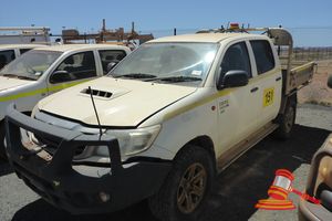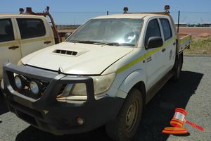 4/2012 TOYOTA HILUX SR DUAL CAB TRAY TOP, WHITE, 4X4, MANUAL, P/S, A/C, 3.0 D4D TURBO DIESEL, SMART BAY, 2 X SPOT LIGHTS, SIDE STEPS, FLASHING LIGHTS, SEAT COVERS, 2 X TRAY MOUNTED TOOLBOXES (1 X DAMAGED) TOW ASSEMBLY, 2 X SPARES, REG NO - (UNLIC) ODO - 266,768KMS SHOWING, ENGINE# 1KD5707704, VIN# MR0FZ22G601178920 (FL#03H5984) (S44#RITM7869860) (DR#65902) (SK#) (*NOTE - PAINT/STONE CHIPS ON BONNET & FRONT WHEEL ARCH FLARES BODY TRIM BEHIND RHS BUMPER MISSING REAR PASSENGER WINDOW TINT DAMAGED, MINOR STAINS/MARKS TO ROOF LINING, PAINT DAMAGED ON AIR INTAKE VENT, CORROSION SPOT JON ROOF/WINDOW PILLARS/BONNET, 1 X WINDSCREEN CHIP*)