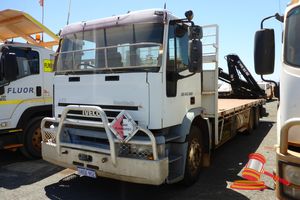 1997 IVECO EURO TECH 340 SINGLE CAB TRAY BACK, WHITE, 4X2, MANUAL, P/S, A/C, DIESEL, EATON FULLER 13 SPEED GEAR BOX, REAR MOUNTED HIAB CRANE, TYPE 102, 1997, AIR BAG SUSPENSION, REG NO - 1HOX952 (LIC 12/1/2023) ODO - 178,601KMS SHOWING, ENGINE# 440455789, VIN# 6F2VFMT00VDD30010 (SK#275)