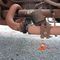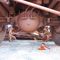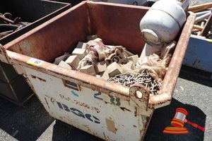 STEEL TUB, CONTAINS SMALL CONCRETE BLOCKS AND LENGTH OF CHAIN