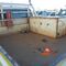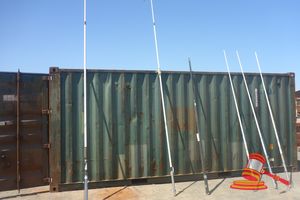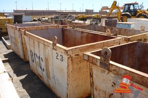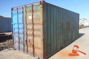 20FT HALF HEIGHT SEA CONTAINER (2607360) NO LID CREAM. 1 X CORNER SECTION CUTOUT (IN CONTAINER) REAR DOOR LOCK ASSEMBLY MISSING DUAL DOORS NOT CLOSING PROPERLY
