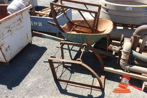 2 X DRUM STANDS AND STEEL TUB WHEEL BARROW
