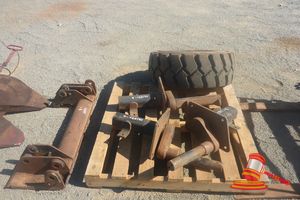 MIXED SKID STEER SPARES, INCLUDES SKID STEER TYRE & RIM, ATTACHMENT PLATE & 3 X POSI TRACK AXLES