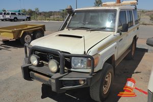 10/2011 TOYOTA LANDCRUISER 76 SERIES WAGON, WHITE, 4X4, MANUAL, P/S, A/C, V8 TURBO DIESEL, STEEL BULLBAR, SPOT LIGHTS, SNORKEL, SIDESTEPS, WORKLIGHTS, REAR MOUNTED TANDEM SPARE WHEEL CARRIERS, CARGO BARRIER, REG NO - (UNLIC) ODO - 176,175KMS SHOWING, ENGINE# 1VD0125153, VIN# JTEEV73J700006779, (FL#03H5990) (S44#RITM7665041) (DR#65754) (SK#298)