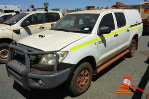1/2008 TOYOTA HILUX DUAL CAB TRAY TOP, 4X2, MANUAL, P/S, A/C, 3.0 DED TURBO DIESEL, BULLBAR, WORKLIGHTS, FOLD OUT VICE, CARRY RAIL, FOLD DOWN STEP TO TRAY, TOW ASSEMBLY, SEAT COVERS, TRAY MOUNTED TOOLBOX, REG NO - (UNLIC) ODO - 214,272KMS SHOWING, ENGINE# 1KD746428, VIN# MR0EZ12G904152459, (FL#02H58) (S44#RITM7921708) (DR#65956) (SK#280) (*NOTE - LH & RHS FRONT WHEEL ARCH PANELS DENTED, SURFACE RUST ON BULLBAR, INTERIOR DIRTY/STAINED/ MARKED, CORROSION SPOTS ON ROOF, INTERIOR TRIM MISSING, RUST HOLES IN TRAY AND REAR MUDGUARDS*)