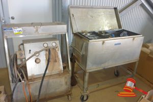 HYDRAULIC POWERPACK, STAINLESS STEEL, MOBILE, 240V PLUG - DIALS CORRODED & STAINLESS STEEL MOBILE BIN/TANK WITH ASSORTED FITTINGS & HOSES (DA#3601-9200)