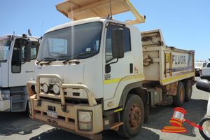 5/2014 ISUZU FVZ1400 TIPPER, WHITE, 6X4, AUTO, P/S, A/C, 6 CYL 7.8L DIESEL, ALLOY BULLBAR, AIR SUSPENSION DRIVERS SEAT, ALLISON AUTO GEAR BOX, TWO WAY, FOPS, ISOLATORS, DAY CAB, TOW HITCH, ORH TIPPER BODY, TWO WAY TIPPER GATE, ROLL UP TIPPER TARP, SPOTLIGHTS, GVM24000, GCM36000, REG NO - 1GIP734 (LIC 29/12/2022) ODO - 132,396KMS SHOWING, ENGINE# 6HK1657665, VIN# JALFVZ34PE7000544 (A/NO-FLR4084) (SK#289) (*NOTE - WINDSCREEN CRACKED, STONE/PAINT CHIPS ON CAB BONNET, RHS FRONT CAB CORNER PANEL LOOSE, CORROSION SPOTS ON TIPPER BODY, ROLL UP TIPPER TARP HANDLE BROKEN, 1 X REAR TYRE U/S (FLAT)*)