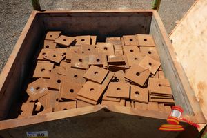 WOODEN BOX, CONTAINS QTY OF DELINEATOR BASES
