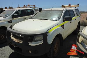 3/2014 FORD RANGER 2 DUAL CAB TRAY BACK, WHITE, 4X4, AUTO P/S, P/S, A/C, 3.2LTR TURBO DIESEL, SMARTBAR, WORKLIGHTS, TOW ASSEMBLY, TRAY MOUNTED STEEL TOOLBOX, REG NO - (UNLIC) ODO - 180,892KMS SHOWING, ENGINE# P5AT1092944, VIN# MNAUMEF50EW251392 (FL#03H7168) (S44#RITM7863781) (DR#65898) (SK#318) (*NOTE - PAINT WORN/FITTED, PANEL DAMAGE TO PASSENGER SIDE FRONT MUDGUARD AND TRAY REAR PANEL INTERIOR DUST STAINED AND MARKED*)