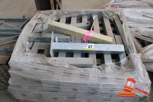 PALLET CONTAINING LARGE QUANTITY OF GALVANISED METAL BASE PLATES, APPROX 70mm x 70mm x 710mm