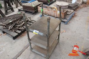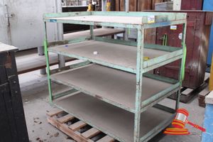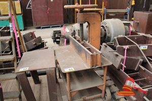 SCREW PRESS VICE ON METAL TROLLEY, APPROX 915mm L x 610mm W x 625mm H. NOTE: USED IN THE BLACKSMITHS SHOP - BLOCK 2