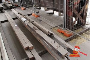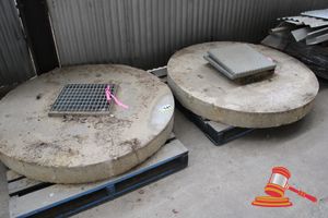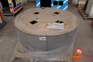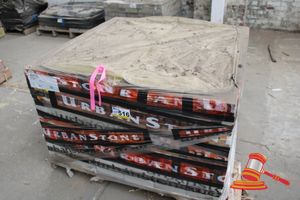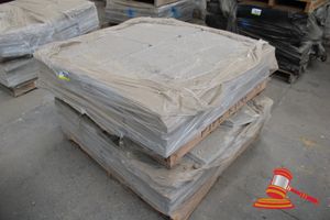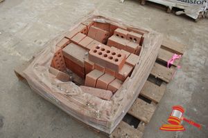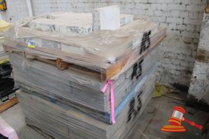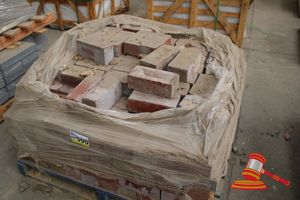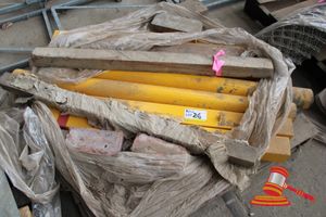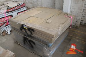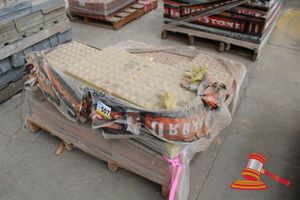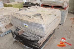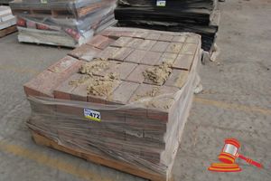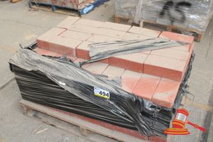 PALLET CONTAINING PART ROLL OF FENCING WIRE AND QUANTITY OF REBAR PLATES